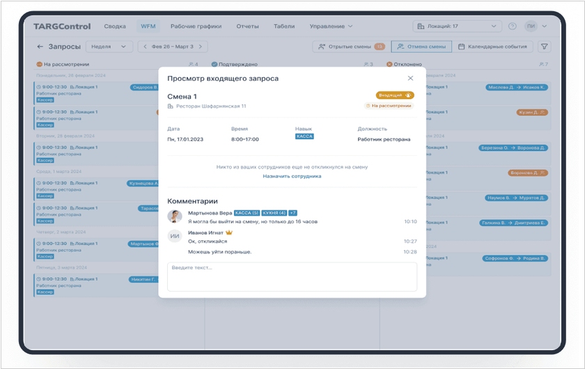 TARGControl представил обновленную биржу смен с улучшенной навигацией и мгновенными уведомлениями. Менеджеры видят все открытые смены и отклики сотрудников в одном окне, что значительно ускоряет поиск подмен и перераспределение персонала. Сотрудники могут быстро откликнуться на подработку через мобильное приложение. Обновление снижает нагрузку на администраторов и помогает поддерживать укомплектованность смен без авралов.