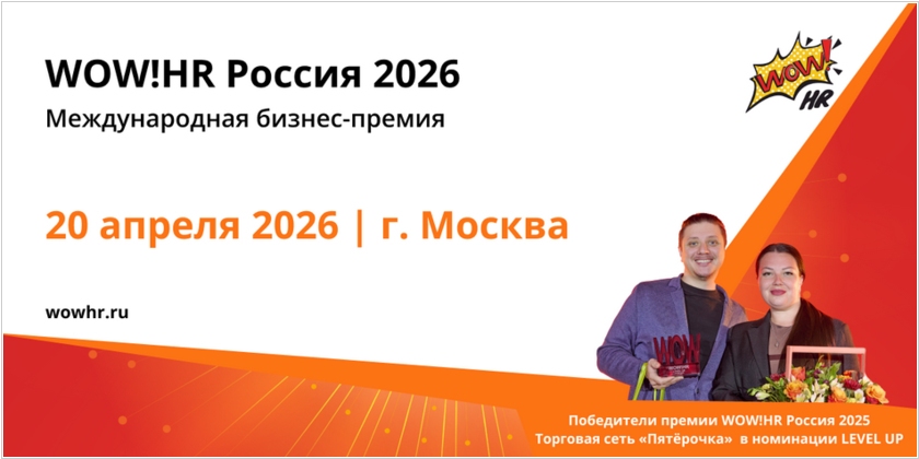 20 апреля 2026 года в Москве состоится XI Международная бизнес-премия WOW!HR Россия – это самая авторитетная международная премия в области управления персоналом, которая с 2015 года объединяет, отмечает и продвигает лучшие HR-практики. Приглашаем компании подать заявки и представить свои лучшие реализованные HR-проекты профессиональному сообществу.